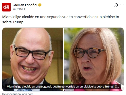 Segunda vuelta por la alcaldía de Miami enfrenta a candidata demócrata y republicano en contienda influida por Trump