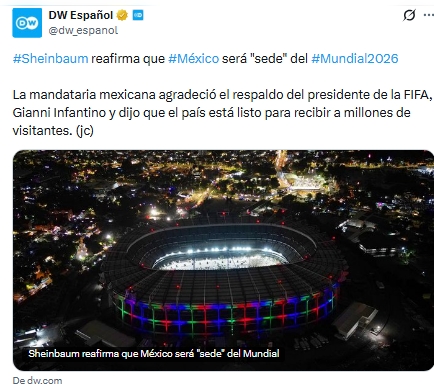 La presidenta Claudia Sheinbaum reiteró que México será una de las sedes de la próxima Copa del Mundo de la FIFA, subrayando que el país mantiene su compromiso con la organización del torneo y con los preparativos necesarios para recibir el evento deportivo.