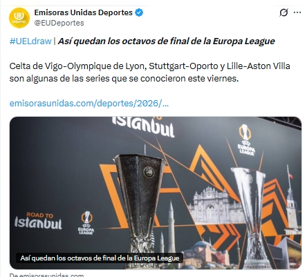 La Europa League ya tiene a sus 16 equipos clasificados para los octavos de final, instancia que comenzará el 12 de marzo y concluirá el 19 con los partidos de ida y vuelta.