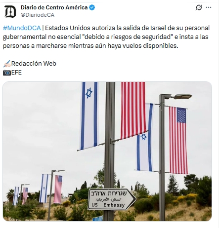 Departamento de Estado de Estados Unidos autoriza salida de personal no esencial de Israel por riesgos de seguridad