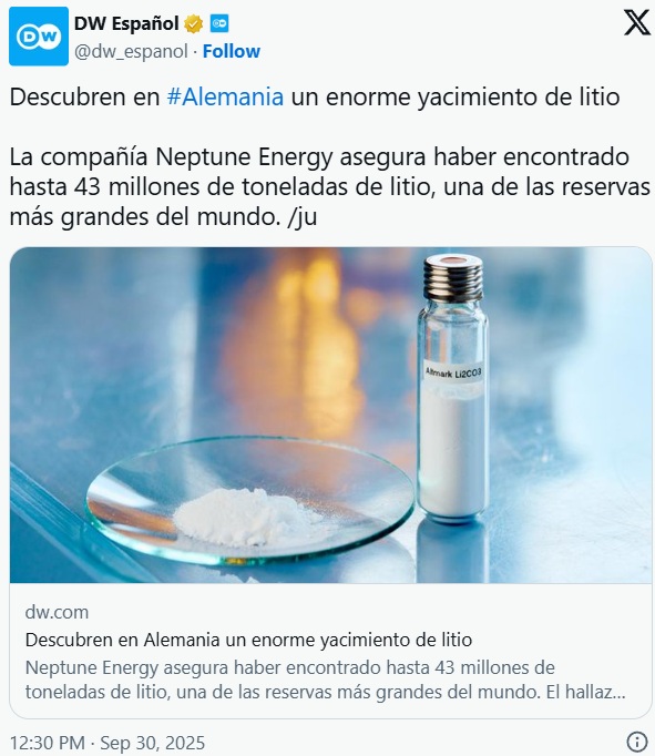Aunque la estimación inicial de la compañía era de 70 toneladas, la reciente evaluación de la consultora internacional Sproule ERCE sitúa a la región entre las reservas más grandes del mundo, representando un potencial estratégico para Alemania y Europa.