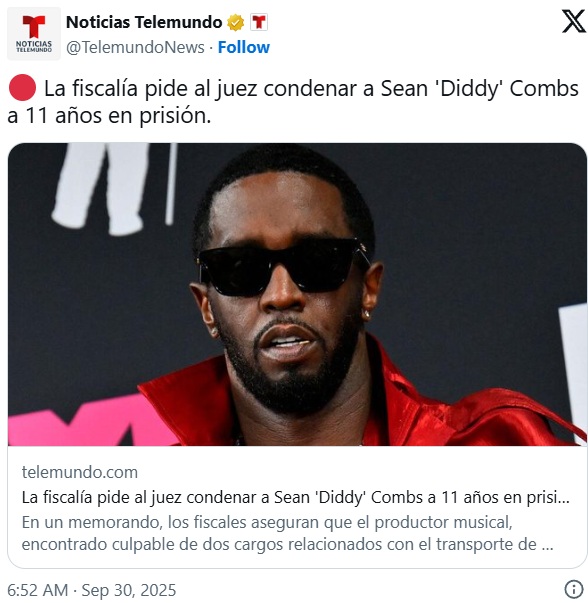 Fiscalía de EE.UU. pide 11 años de prisión para P. Diddy