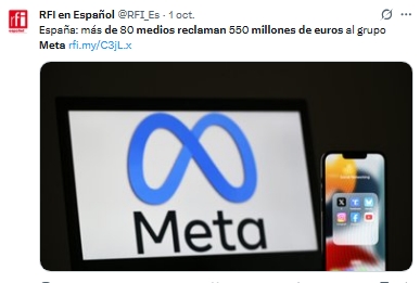 Medios españoles reclaman 551 millones de euros a Meta por presunta competencia desleal