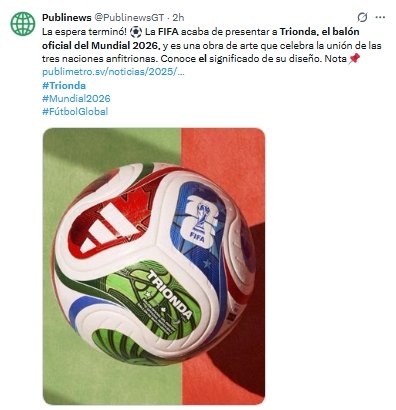 La FIFA reveló este jueves en Nueva York la pelota oficial de la Copa del Mundo 2026, llamada Trionda, diseñada por Adidas.