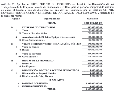 INSTITUTO DE RECREACIÓN DE LOSTRABAJADORES DE LA EMPRESA PRIVADA DE GUATEMALA IRTRA