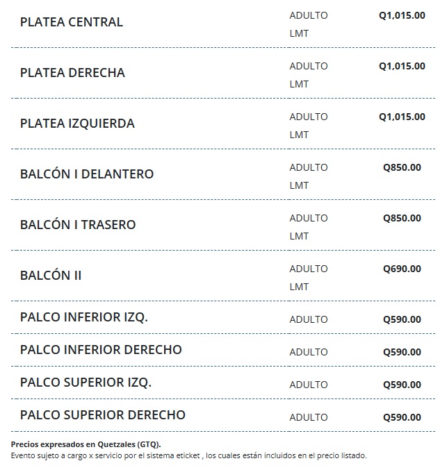 Admisión: Palcos Q100.00 | VIP Q120.00