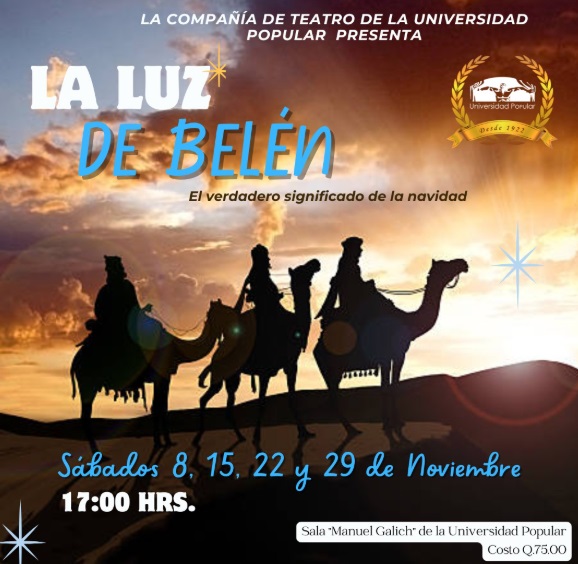 La Luz de Belén es una emotiva obra familiar que celebra el espíritu navideño y el verdadero significado de la Navidad. A través de una hermosa historia, la obra invita a los espectadores a reflexionar sobre la importancia del amor, la paz y la esperanza en estas fechas tan especiales.