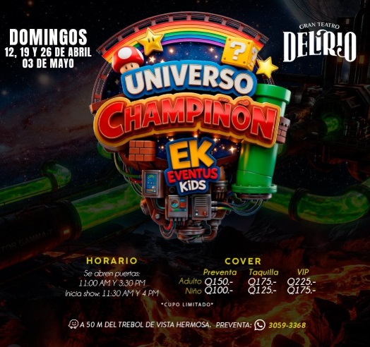 Con una puesta en escena impactante, efectos visuales, música y momentos pensados para emocionar a grandes y pequeños, Universo Champiñón promete convertirse en una experiencia inolvidable para toda la familia, donde la fantasía cobra vida sobre el escenario.