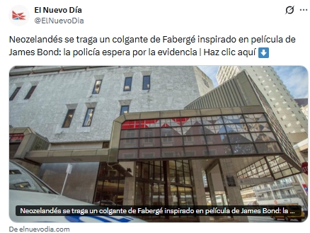 Un insólito robo ocurrió en Auckland, Nueva Zelanda, donde un hombre de 32 años fue detenido después de robar y tragarse un Huevo de Fabergé verde con incrustaciones de diamantes, valorado en 20.000 dólares, mientras se encontraba dentro de una joyería de alta gama.
