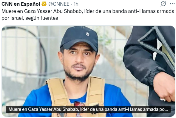El líder de una banda anti-Hamas armada y respaldada por Israel murió en Gaza, según informaron a CNN tres fuentes israelíes.