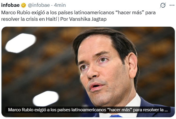 Rubio destacó que la situación en Haití requiere esfuerzos coordinados y un mayor compromiso regional para garantizar la estabilidad y la protección de la población.
