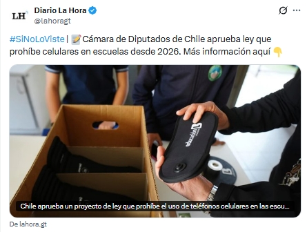 La Cámara de Diputados de Chile aprobó el proyecto de ley que prohíbe el uso de teléfonos celulares y otros dispositivos electrónicos personales en todas las escuelas del país a partir de 2026.