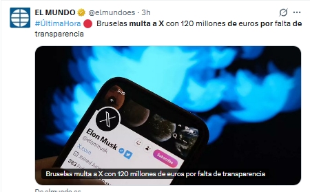 UE multa a X por violar la Ley de Servicios Digitales