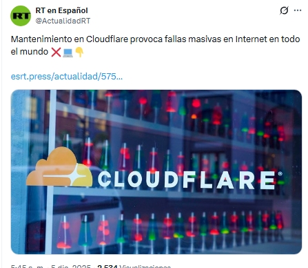 El mantenimiento programado de Cloudflare realizado este viernes provocó problemas de conectividad a nivel mundial, afectando a plataformas como Zoom, Canva, LinkedIn y DownDetector.