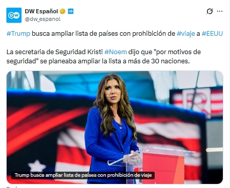 Estados Unidos prepara una ampliación significativa de su prohibición de viajes para incluir a más de 30 países, según informó la secretaria de Seguridad Nacional, Kristi Noem, quien señaló que el presidente Donald Trump aún evalúa qué naciones añadir por motivos de seguridad; la medida, vigente desde junio, ya restringe el ingreso de ciudadanos de 12 países y limita el de otros siete con el objetivo de prevenir la entrada de “terroristas extranjeros”, afectando tanto a inmigrantes como a visitantes temporales, mientras que Noem justificó la expansión alegando la falta de gobiernos estables que puedan proporcionar información confiable sobre sus ciudadanos.