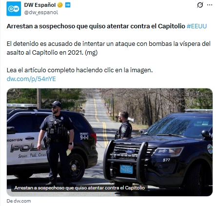 Primera detención por intento de atentado previo al asalto al Capitolio de 2021