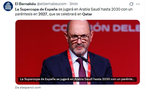 La Real Federación Española de Fútbol busca una sede alternativa para la Supercopa de 2027 debido a la imposibilidad de celebrarla en Arabia Saudí en las fechas habituales de enero, coincidentes con la disputa de la Copa Asia.