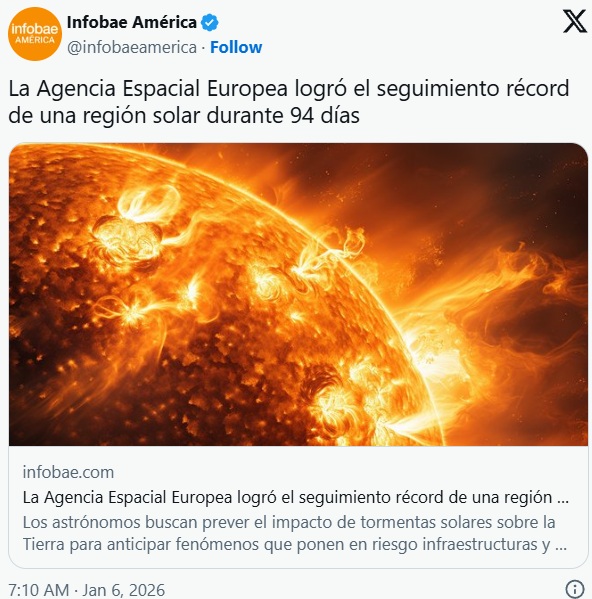 La Agencia Espacial Europea logró el seguimiento récord de una región solar durante 94 días