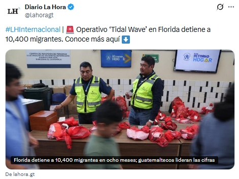 De acuerdo con las autoridades estatales, Guatemala encabeza la lista de países de origen de los detenidos con 3.435 personas, seguida de México con 3.331, Honduras con 1.353, El Salvador con 312 y Venezuela, también con 312. Las autoridades no precisaron la procedencia del resto de los migrantes arrestados.