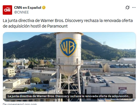 En una carta dirigida a los accionistas, la junta de WBD señaló que la iniciativa de Paramount se asemeja a una compra apalancada, un esquema financiero basado mayoritariamente en deuda, lo que incrementaría la exposición y vulnerabilidad financiera de la compañía.