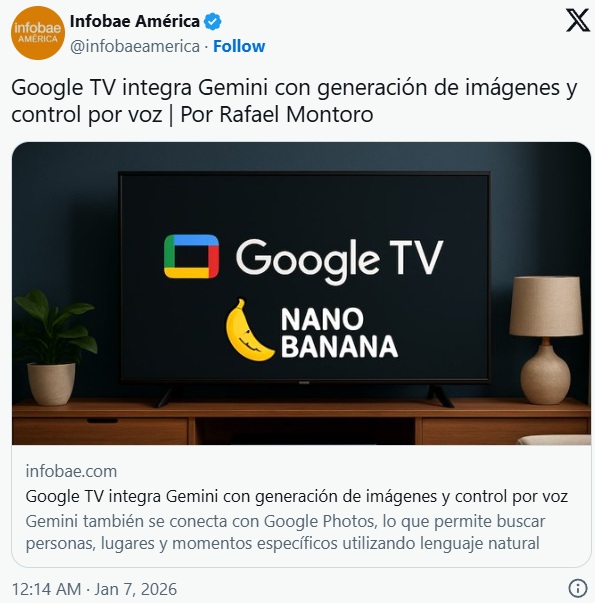 En el marco del CES 2026, Google anunció una serie de funciones avanzadas impulsadas por Gemini que llegarán próximamente a Google TV. El objetivo es transformar el televisor en un centro interactivo y creativo, donde la inteligencia artificial potencie la exploración de contenidos, la personalización visual y la configuración por comandos de voz.