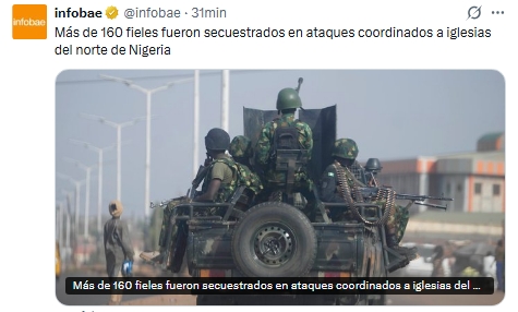 Más de 160 secuestrados en ataques armados a iglesias en el norte de Nigeria