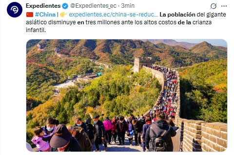 La población de China se redujo en aproximadamente 3,39 millones de personas durante 2025, según datos oficiales publicados por la Oficina Nacional de Estadística. Se trata del cuarto año consecutivo de contracción demográfica en el país.