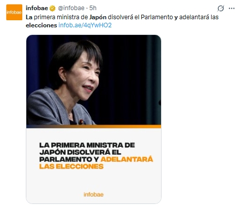 La primera ministra de Japón, Sanae Takaichi, anunció su decisión de disolver la Cámara Baja del Parlamento a partir del viernes 23 de enero de 2026, lo que dará paso a la convocatoria de elecciones generales anticipadas el próximo 8 de febrero.
