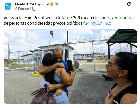 Foro Penal confirma 266 excarcelaciones de presos políticos en Venezuela