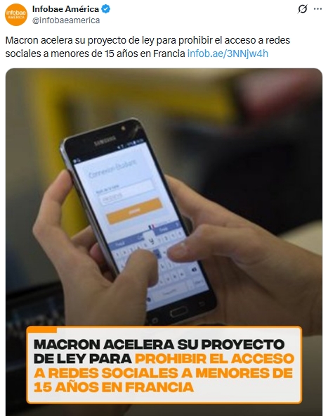 El presidente de Francia, Emmanuel Macron, anunció su intención de acelerar el proceso legal para que la prohibición del uso de redes sociales por parte de menores de 15 años entre en vigor antes de septiembre, cuando inicia el próximo curso escolar.