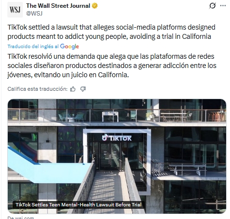 Con este acuerdo sumado al alcanzado una semana antes por Snapchat, solo Meta (Instagram y Facebook) y Alphabet (YouTube) continúan involucradas en este primer y esperado caso. Los términos financieros no fueron revelados, pero marcan un giro clave en la presión legal contra las plataformas por su impacto en la salud mental de menores..jpeg)