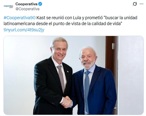 Lula resaltó el impulso al programa Rutas de Integración Suramericana, que contempla la construcción de dos corredores bioceánicos utilizando puertos chilenos para mejorar la conectividad entre Brasil, Bolivia, Paraguay, Argentina y Chile. Por su parte, Kast quien asumirá la presidencia el 11 de marzo subrayó que los desafíos regionales en seguridad, crecimiento económico y reducción de la pobreza son significativos, y afirmó que la cooperación entre Chile y Brasil puede liderar cambios clave en Sudamérica.