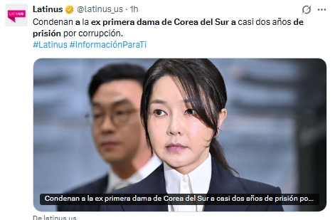 Un tribunal de Corea del Sur condenó a la ex primera dama Kim Keon-hee a 1 año y 8 meses de prisión, además de una multa cercana a los 9.000 dólares, tras hallarla culpable de corrupción.