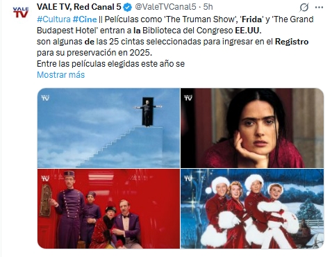 La película Frida, protagonizada por Salma Hayek, fue incorporada al Registro Nacional de Cine de la Biblioteca del Congreso de Estados Unidos, al ser seleccionada entre las 25 obras destacadas este año por su importancia cultural, histórica y estética.