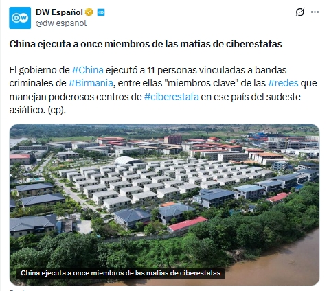 El gobierno de China ejecutó a once integrantes de la mafia de ciberestafas conocida como el “grupo criminal de la familia Ming”, con base en Birmania. Los condenados habían recibido la pena de muerte en septiembre pasado por un tribunal de la ciudad de Wenzhou, al ser considerados miembros clave de la organización, según informó la agencia estatal Xinhua.