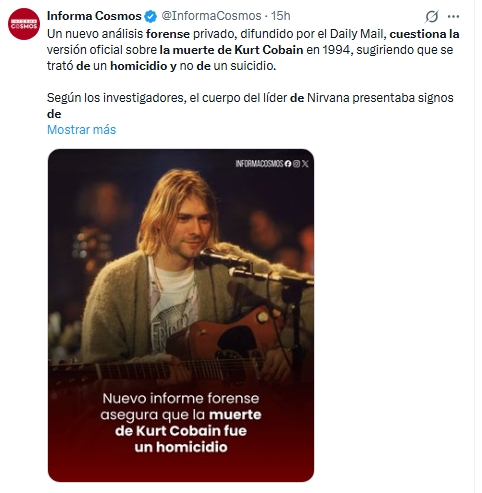 Casi 32 años después de la muerte de Kurt Cobain, vocalista y guitarrista de Nirvana, una nueva investigación forense no oficial ha puesto en duda la versión de que el músico se suicidó el 5 de abril de 1994 en su casa de Seattle.