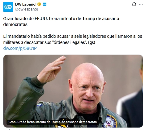 Un gran jurado federal en Washington rechazó el intento del Departamento de Justicia de presentar cargos contra seis legisladores demócratas por la difusión de un video en el que instaban a militares y miembros de la comunidad de inteligencia a rechazar órdenes ilegales.
