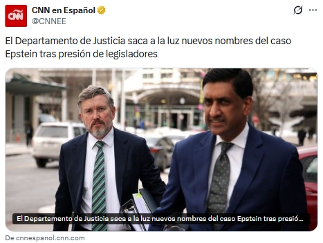 El Departamento de Justicia de Estados Unidos desclasificó este lunes una nueva serie de nombres relacionados con los archivos del caso Jeffrey Epstein, tras la presión de legisladores que accedieron a versiones sin editar de documentos clave.