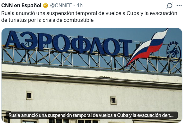 Las aerolíneas rusas Rossiya Airlines y Nordwind Airlines realizarán únicamente vuelos de retorno desde Cuba y posteriormente suspenderán sus operaciones hacia la isla, debido a las dificultades para abastecerse de combustible en el país caribeño.