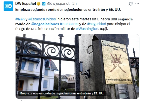 La segunda ronda de negociaciones indirectas entre Irán y Estados Unidos comenzó este martes en Ginebra, en momentos en que ambas partes han mostrado cierta disposición para buscar una solución a las inquietudes que causa el programa nuclear, aunque con el rechazo de Teherán a tratar otros temas.