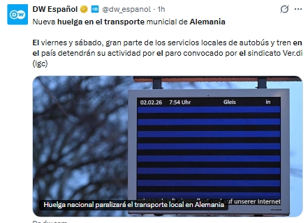 El sindicato alemán de servicios Ver.di llamó a una huelga de dos días, viernes y sábado, que afectará al transporte público municipal en todo el país. La medida busca presionar por mejores condiciones laborales ante el lento avance de las negociaciones.