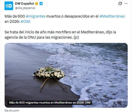 Más de 600 migrantes muertos en Mediterráneo en 2026: OIM