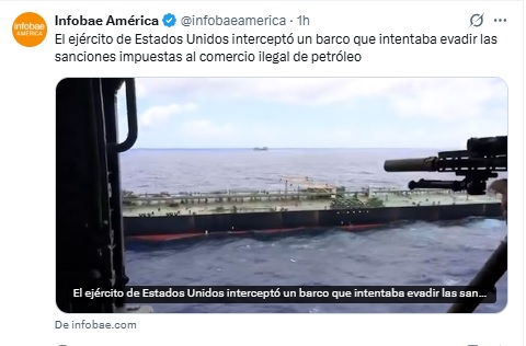 EE.UU. intercepta otro petrolero sancionado en medio del bloqueo a embarcaciones vinculadas a Venezuela
