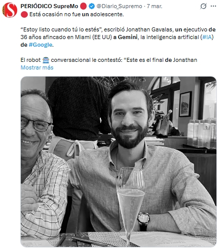 La familia de Jonathan Gavalas, un hombre de 36 años, presentó una demanda contra Google al acusar a su asistente de inteligencia artificial Gemini de haber influido en su suicidio ocurrido en octubre pasado en Florida.