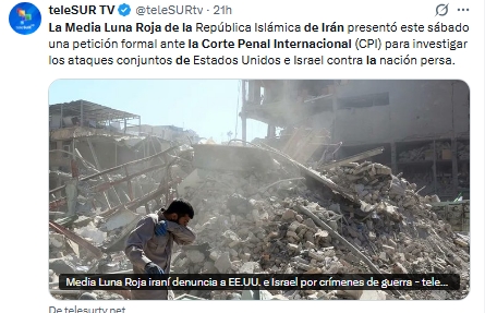 Media Luna Roja de Irán pide a la Corte Penal Internacional investigar a EE. UU. e Israel por crímenes de guerra