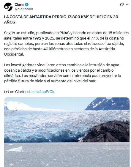 Un estudio liderado por la Universidad de California reveló que la Antártida ha perdido más de 12.800 kilómetros de costa en los últimos 30 años en la llamada línea de apoyo, la zona que separa el hielo que descansa en tierra del que flota en el mar.
