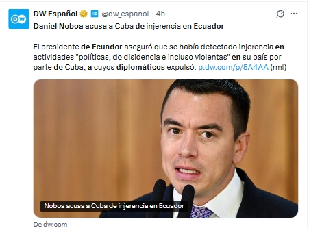 El presidente de Ecuador, Daniel Noboa, afirmó que diplomáticos de Cuba habrían tenido participación en actividades políticas, de disidencia e incluso actos violentos dentro del país.