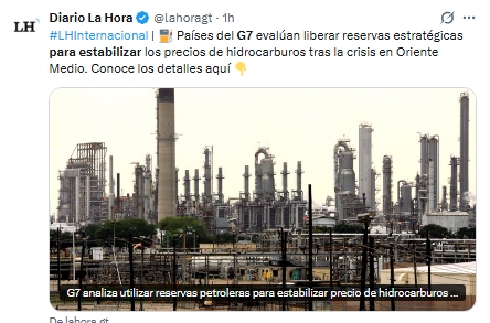 Los países del Grupo de los Siete (G7) manifestaron su disposición a aplicar todas las medidas necesarias para estabilizar los mercados de hidrocarburos, cuyos precios han aumentado por la situación en Oriente Medio. Durante una reunión virtual de ministros de Finanzas, se planteó incluso la posibilidad de utilizar reservas estratégicas de energía para evitar una mayor volatilidad en el mercado.