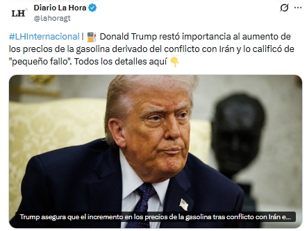 El presidente de Estados Unidos, Donald Trump, restó importancia al aumento de los precios del combustible provocado por el conflicto con Irán y lo calificó como un “pequeño fallo”.