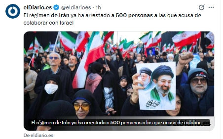 El jefe de la Policía de Irán, Ahmad-Reza Radan, anunció la detención de 500 personas acusadas de enviar información a países enemigos en medio del conflicto actual.